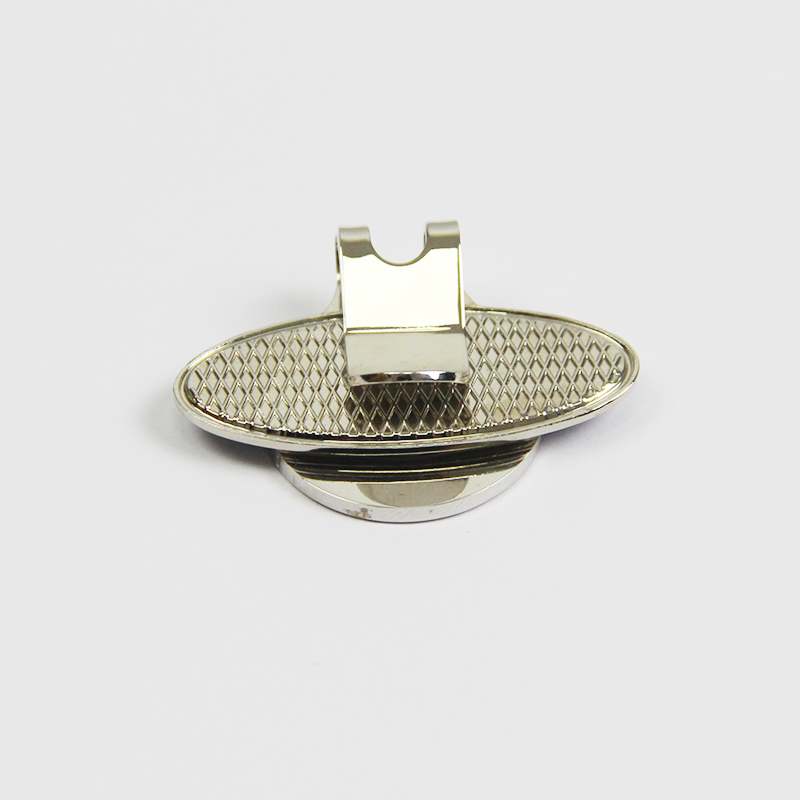 材料:鋅合金為主,塑膠,分帽夾和原片兩部分