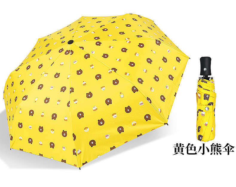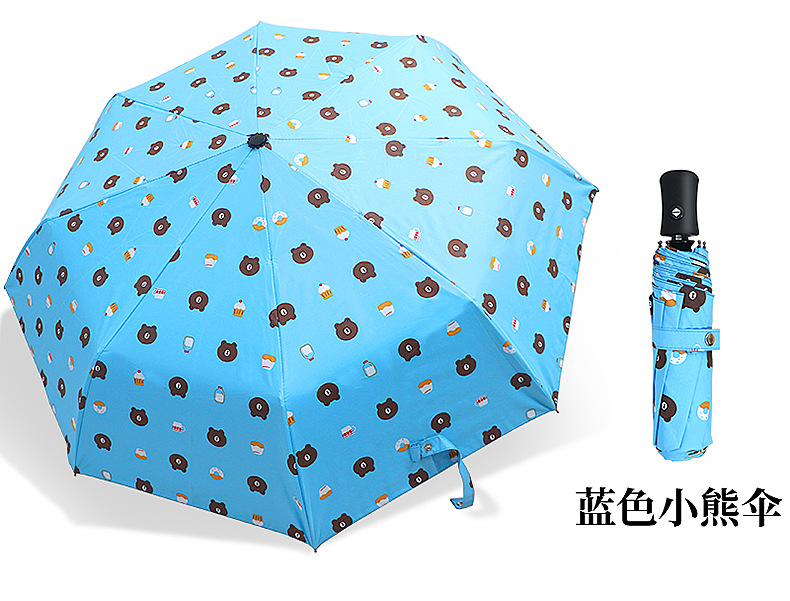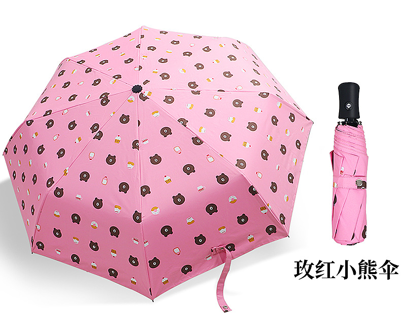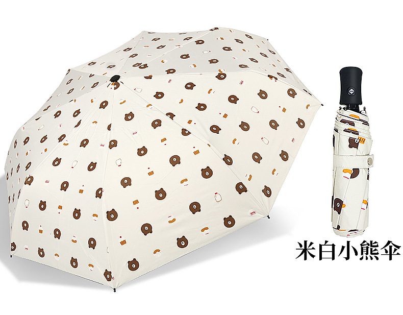 三折全自動晴雨傘 定制卡通黑膠防曬折疊遮陽傘